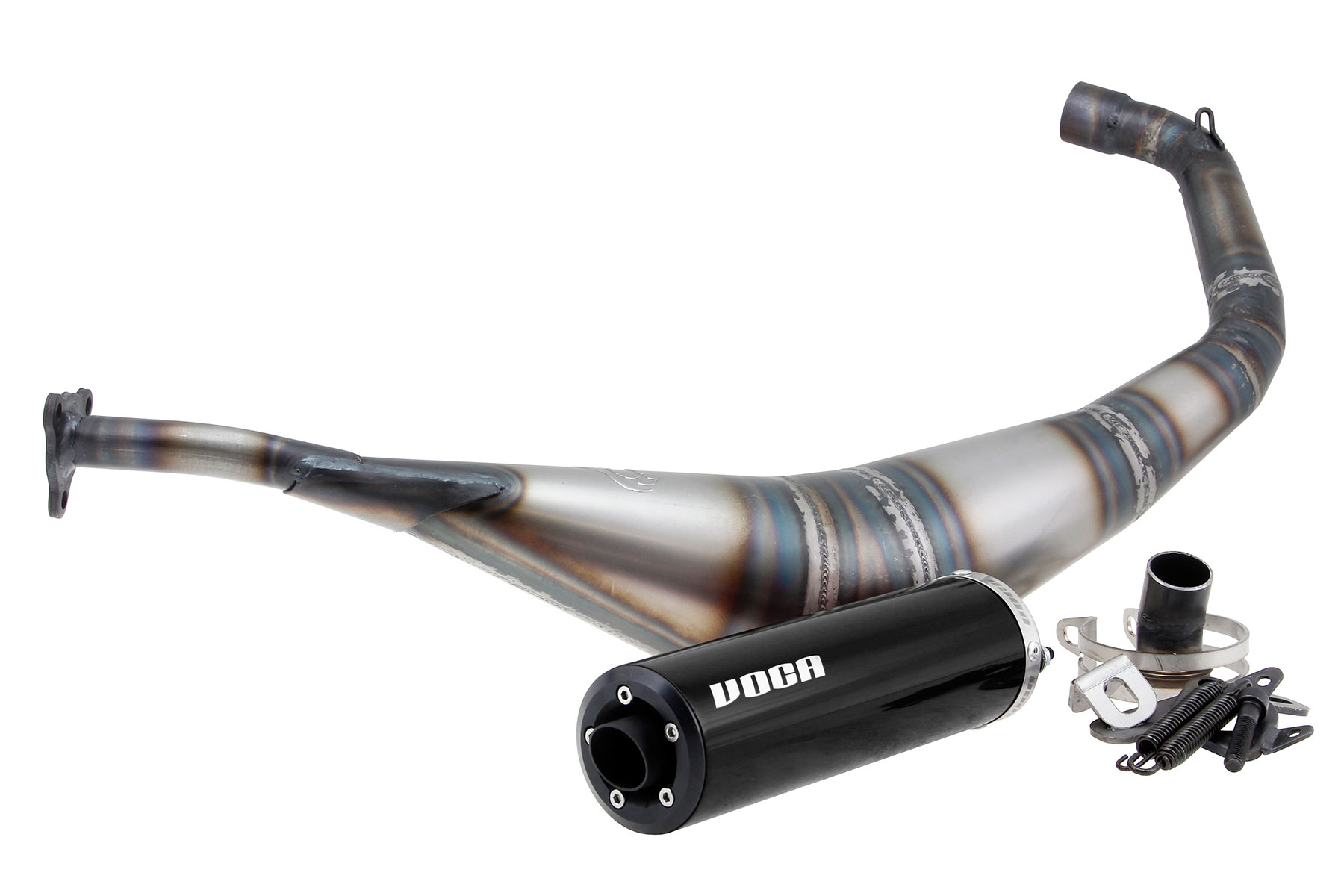 Ha nacido un nuevo guerrero VOCA Racing, el escape VOCA Warrior 50/70 para cilindros originales y cilindros tipo Sport 70. Destaca por una potencia excepcional que dará mucho de que hablar. En cuanto a los acabados ha de destacar que el VOCA Warrior 50/70 en comparación con otros tubos está soldado a mano con 10 conos, lo que nos asegura un acabado Racing de lo más fino! Sin homologación! Relación calidad/precio inmejorable! Disponible con silenciador rojo o negro, tanto para Minarelli AM6 como para Derbi.