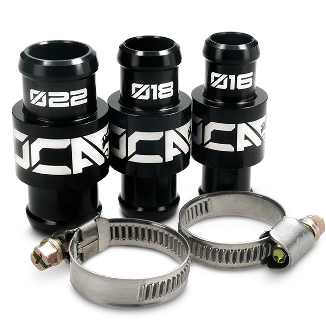 Kühlschlauch-Adapter VOCA Racing “T-Link”, erhältlich für Kühlschläuche mit 16, 18 oder 22mm Durchmesser. Das ideale Zubehör um die Kühlwasser-Temperatur mit VOCA- oder KOSO Temperaturamessern ablesen zu können. Optional auch in Verbindung mit einem VOCA Thermokontakt verwendbar.