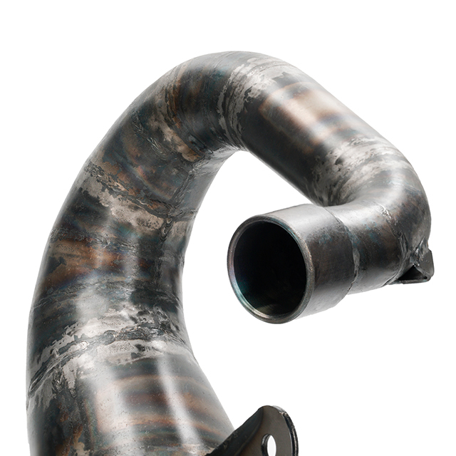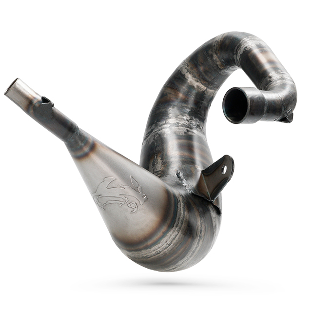 The new VOCA Cross Carbon 80/90 is one of the finest and most elaborated VOCA products ever. The development was mainly done in MiniGP competition and testing benches. The result is an upper exhaust with exceptional performance on 80cc and 90cc cylinders. On top the new VOCA Cross Carbon 80/90cc exhaust is hand-welded of 18 cones! A unique racing finish that allows best performance, especially at low RPM. Apart of that we optimized the geometry in a way that the exhaust fits better to the chassis reducing the risk of damaging the exhaust while doing off-road. The VOCA Cross Carbon 80/90cc exhaust is completed with the latest VOCA carbon silencer equipped with red style disc. As this new VOCA exhaust is very time consuming in production there will be only limited quantities available. Now  available for Derbi DRD Pro.