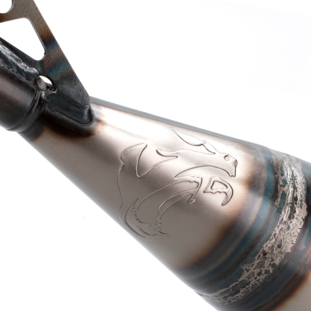 An exhaust with very careful finishes, hand welded cone by cone, giving it a 100% Racing look.