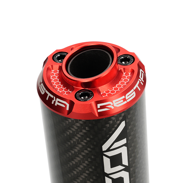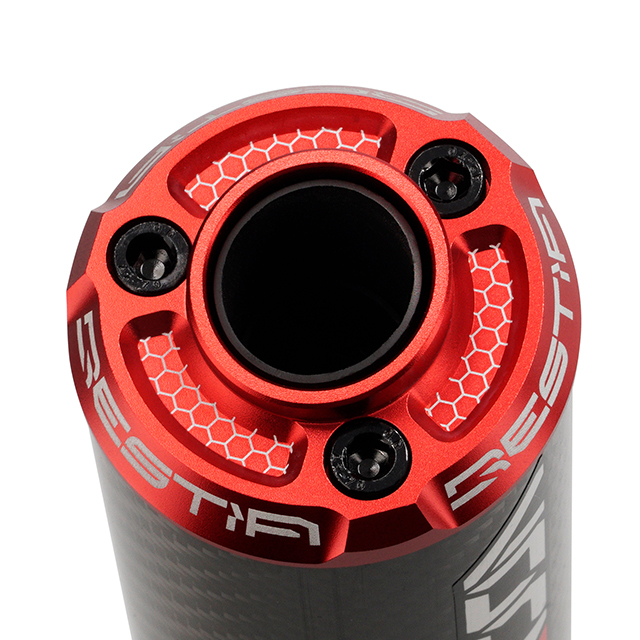 The Voca Carbon CNC silencer in red is designed to fit a wide range of exhaust systems, and is an ideal addition to enhance the aesthetics and performance of your motorbike. Its versatile adaptability and robust design make it a top choice for motorbike enthusiasts.