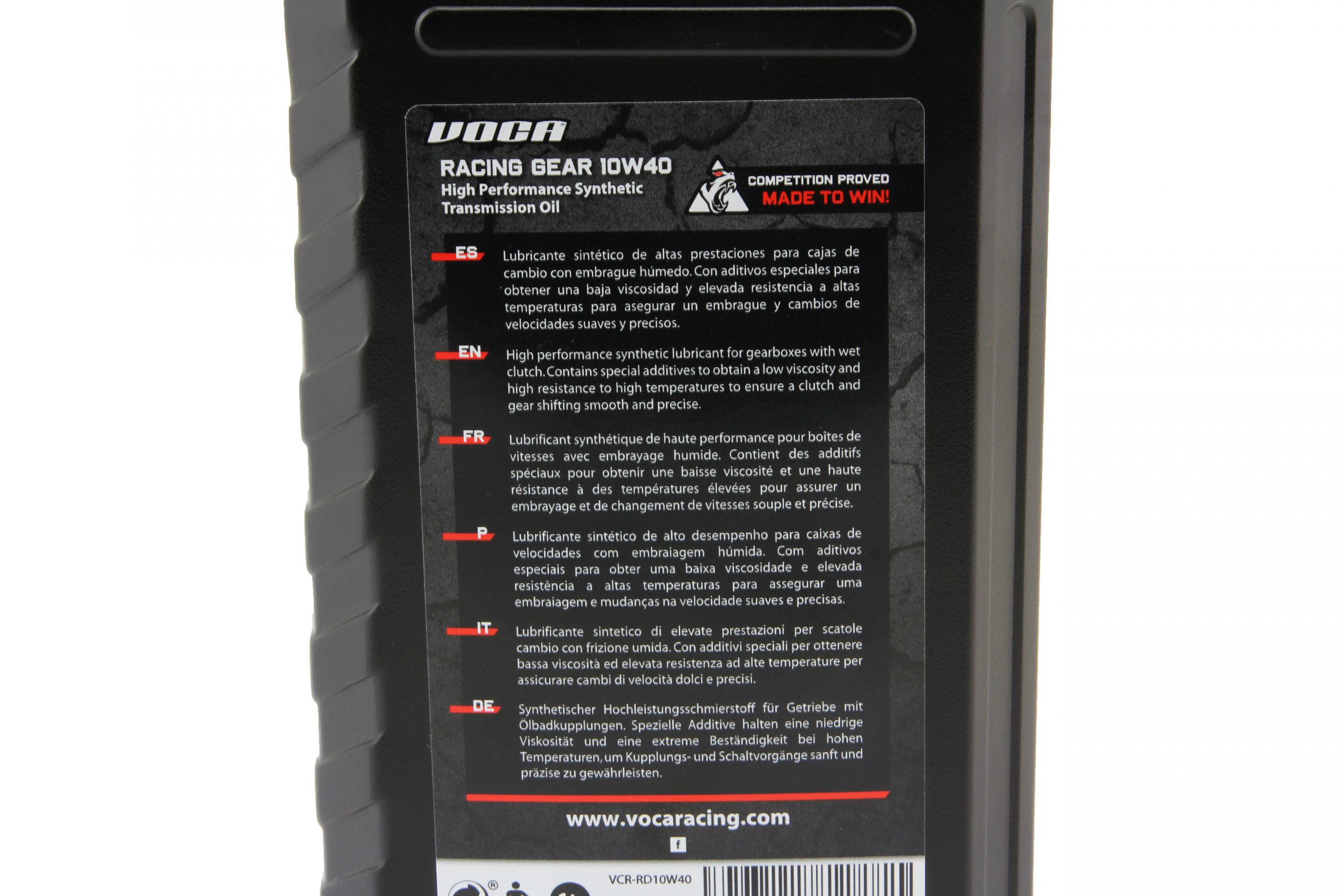VOCA Racing 100% transmission oil. Specially designed to care for and lubricate gearboxes, submerged clutches and gears of 2-stroke and 4-stroke engines to the highest standards.