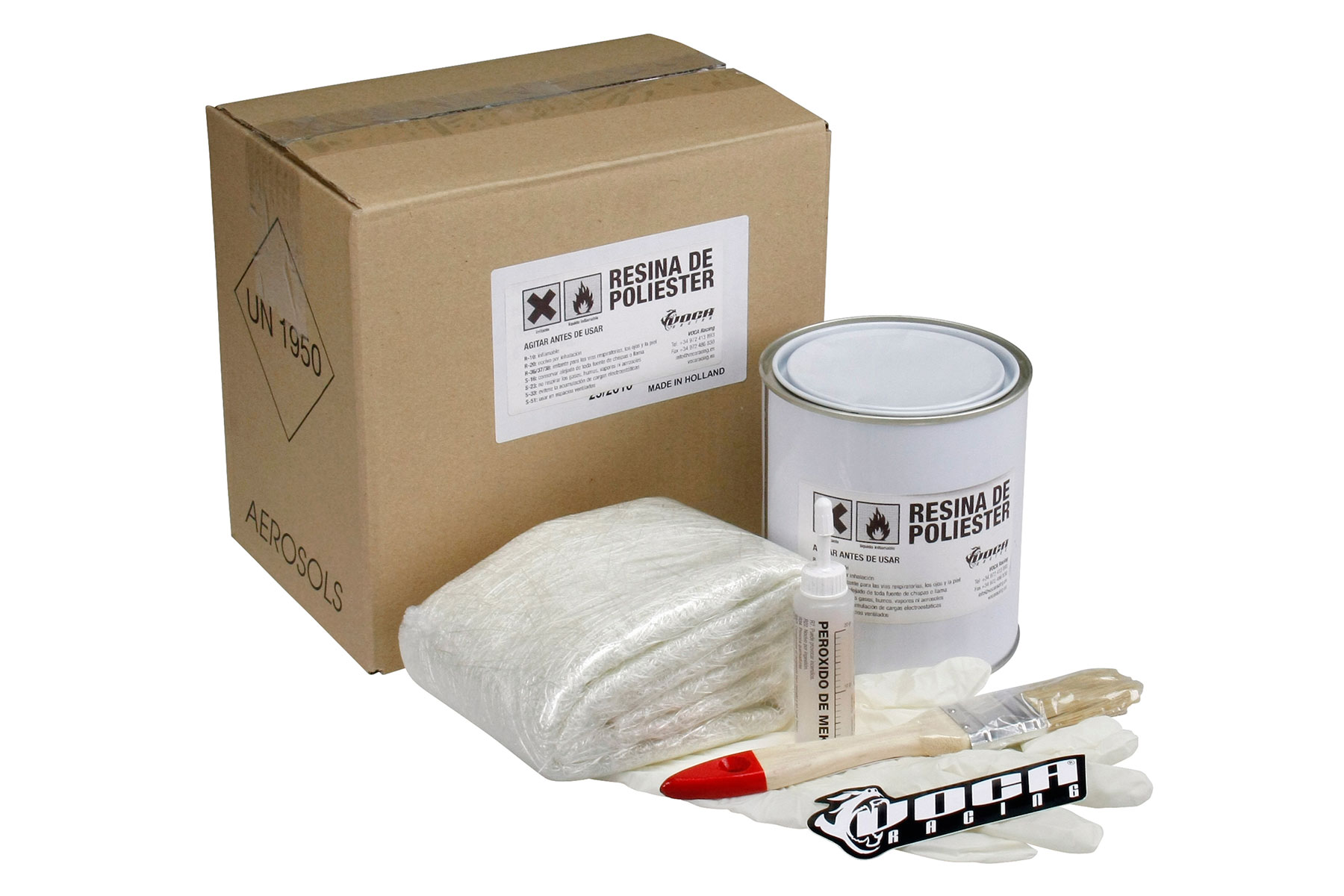Bodywork repair kit VOCA Style, incldes fiber, epoxyd, activator, brush and gloves.