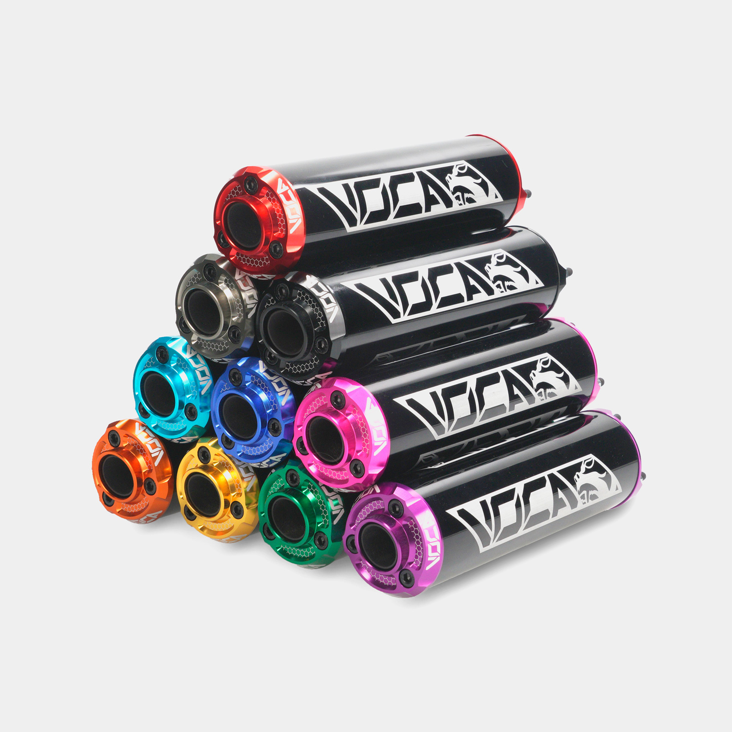 Enhance both the look and performance of your bike with the VOCA Alu-Black Silencer, designed with premium materials and customizable anodised CNC aluminium end caps in a choice of 11 vibrant colours. This silencer, crafted from high-quality aluminium, is not only lightweight but also built to withstand high temperatures, ensuring a long-lasting upgrade for your bike. The selection of CNC-machined caps includes colours like blue, cyan, grey, orange, black, gold, red, pink, green, violet, and neochrome, letting you personalize your exhaust for a striking visual impact.