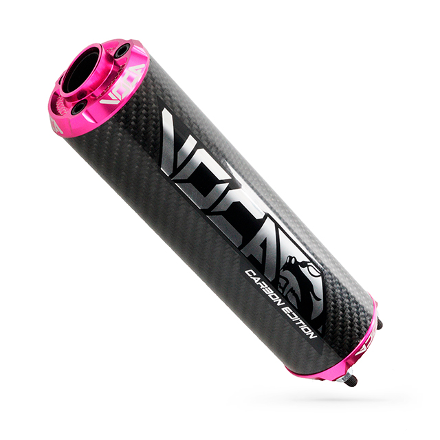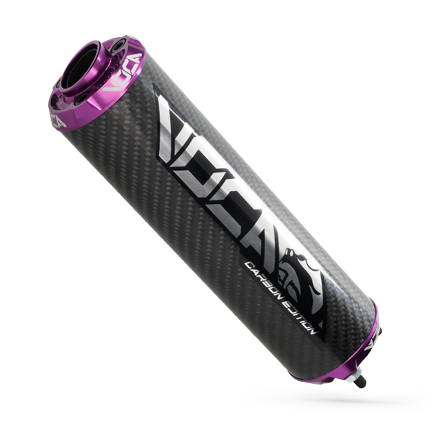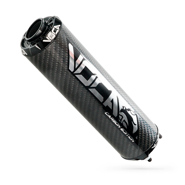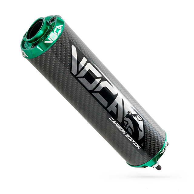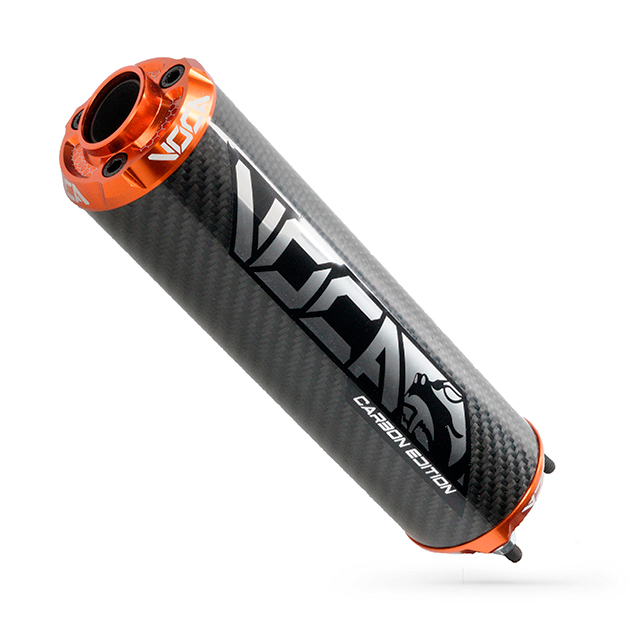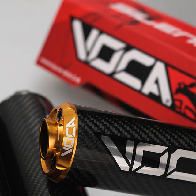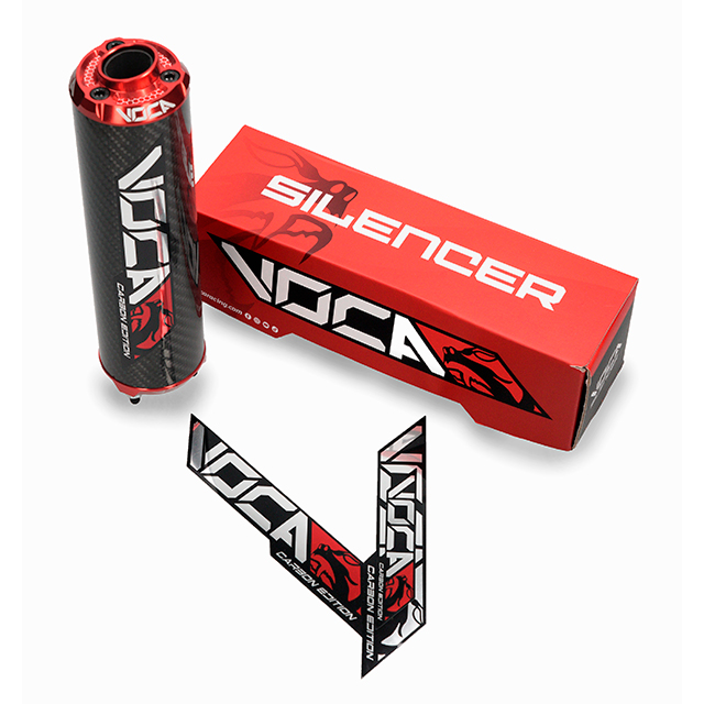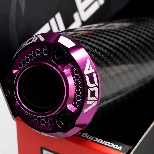 The VOCA Carbon silencer is made of 100% real carbon and the CNC anodised aluminium end caps are available in multiple colours so you can match them to your bike.
