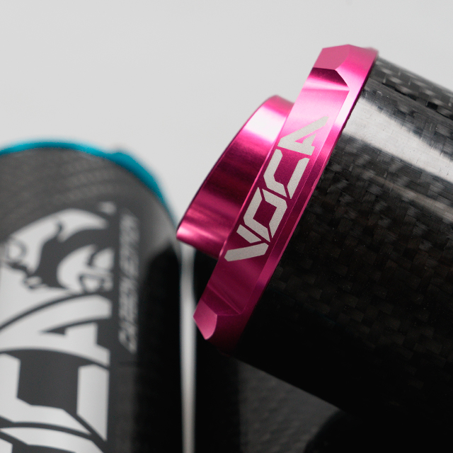 VOCA Carbon silencer with machined CNC aluminium end caps in 10 colours.