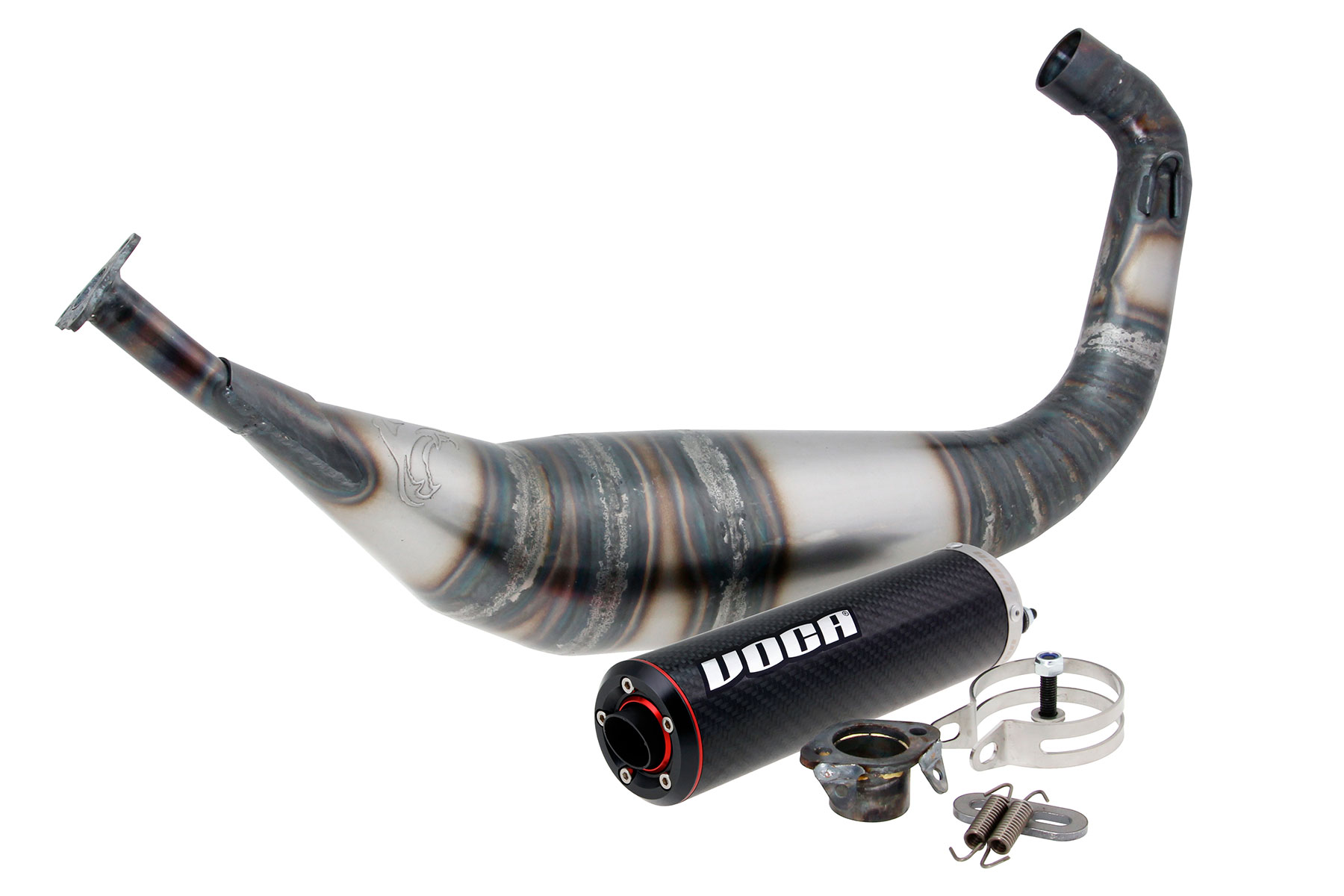 El nuevo rey de la gama de escapes VOCA Racing! El VOCA BigBore 90cc es una verdadera arma que a primera vista destaca por un cuerpo voluminoso y una boquilla de 34mm. Un tubo artesanal de chapa 0,8m equipado con el famoso silenciador VOCA Carbono. En cuanto al rendimiento DESTACAMOS la increible acceleración y un par motor impressionante. Comparado con otros escapes 90cc el VOCA BigBore 90cc dispara antes y mantiene su potencia en un RANGO más amplio de rpm. En LAS PRUEBAS REALIZADAS con un cilindro 90cc (sin tocar) en Motoscoot hemos llegado a subir la moto a 14.000 RPM sin problemas. JUNTANDO TODO ESTO, el VOCA BigBore 90cc te da la sensación que llevas una 125. Recomandable para aquellos que quieren sacarle el maximo de su maquina!