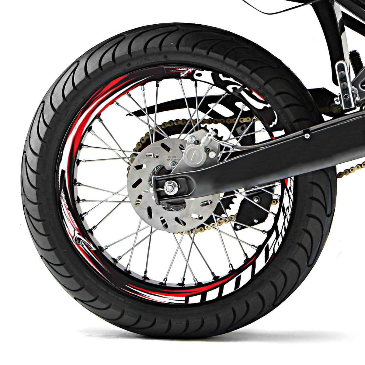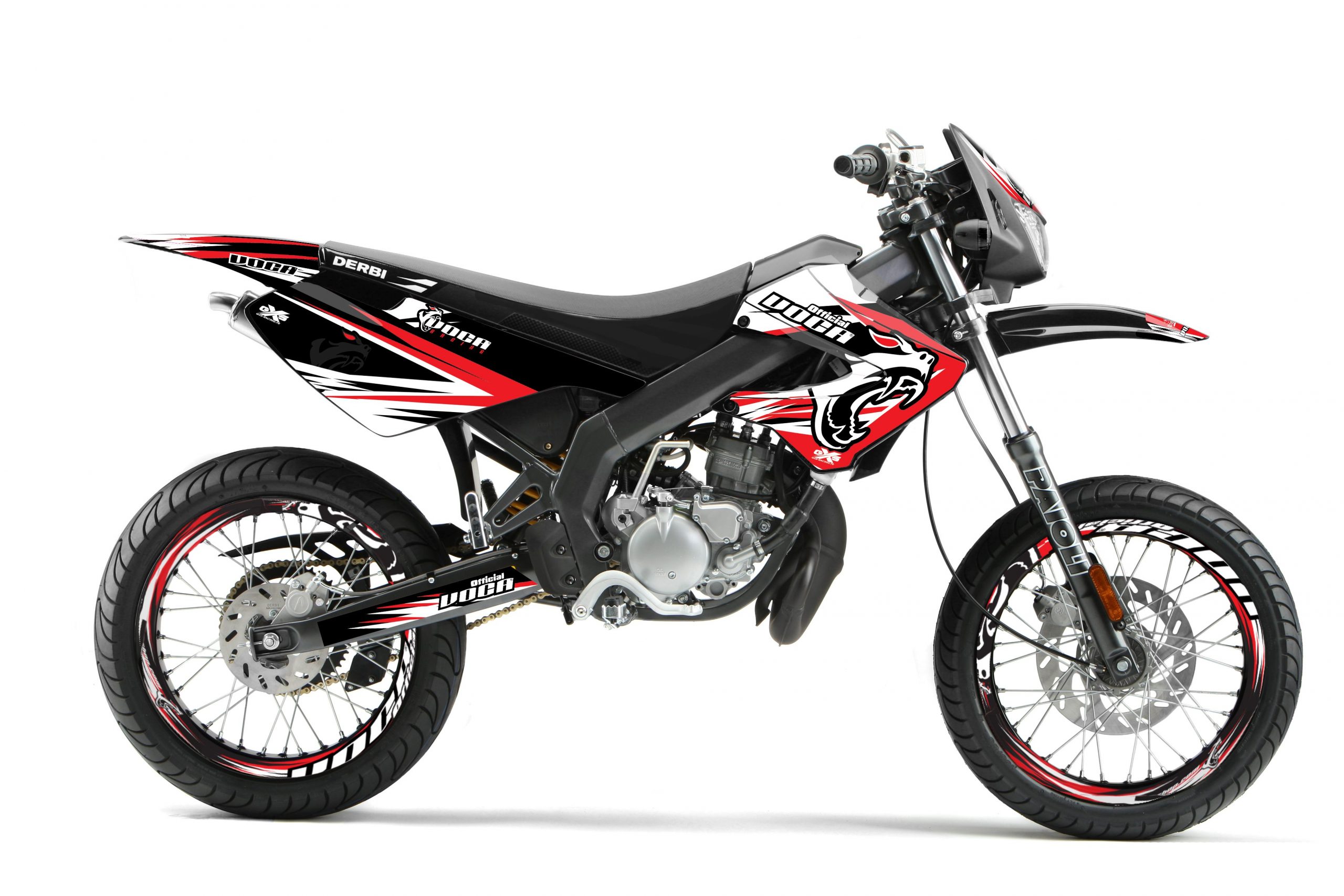 Komplettes Aufkleberset VOCA Official für Derbi X-Race SM 2003-2007. Hochwertiger Druck auf US3 Motocross Vinyl mit UV-Schutz. Das komplette Kit beinhaltet spezielle 170 Mikron Felgenaufkleber.