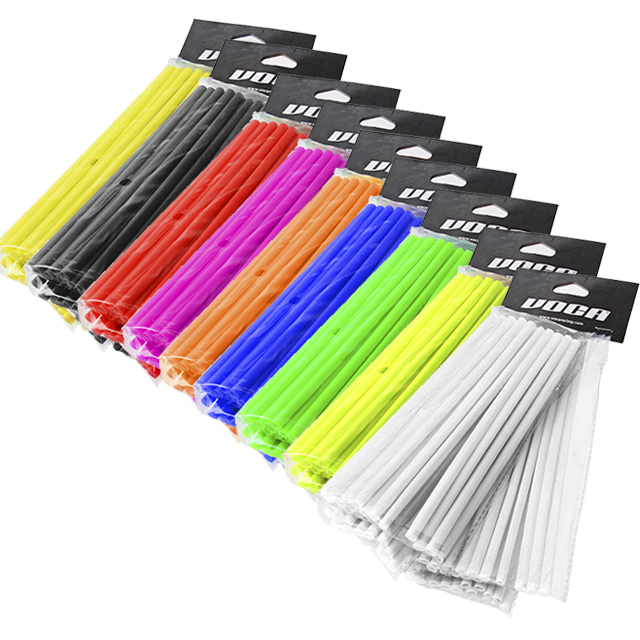 The fitting is easy, you just have to click the covers on the original spokes. The dimensions are optimized for the front and the rear wheel of 50cc gear bikes and cross bikes.